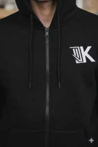 The front features a bold white “K” logo print, giving it a clean and premium streetwear vibe. The heavy-duty zipper, adjustable hood, and spacious kangaroo pockets make it the perfect everyday essential for gym, travel, office, or casual outings.